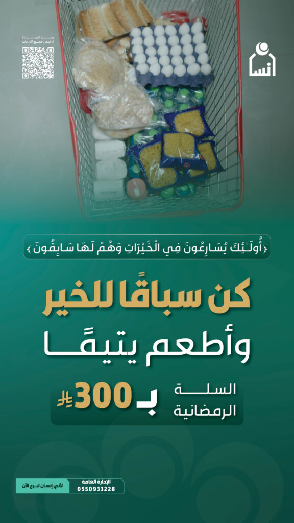 أطلقت الجمعية الخيرية لرعاية الأيتام بمنطقة الرياض «إنسان» مشروع السلة الرمضانية لهذا العام، تزامنًا مع قرب حلول شهر رمضان المبارك، بهدف دعم الأسر المستفيدة وتأمين احتياجاتها من المواد التموينية خلال الشهر الفضيل، وذلك عبر جميع فروع الجمعية البالغ عددها 22 فرعًا في مدينة الرياض ومحافظاتها.